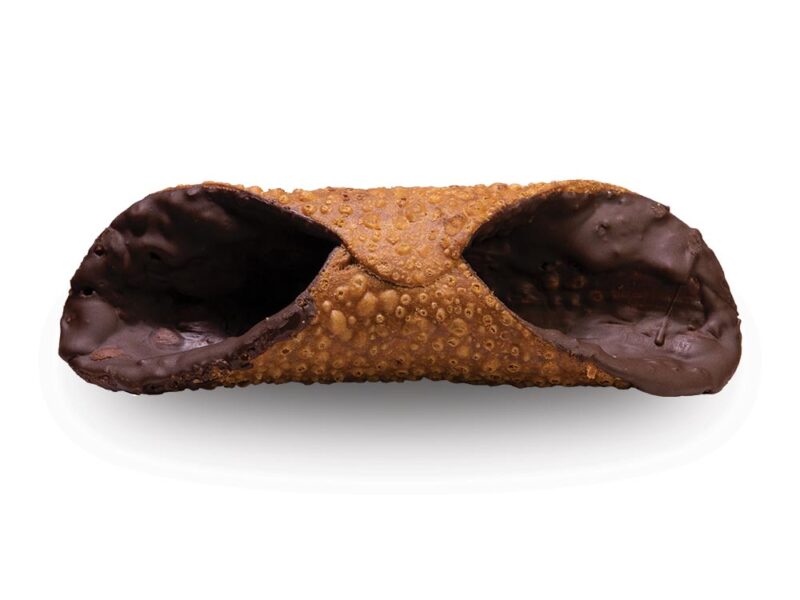 Una cialda tradizionale accoglie una sorprendente colata di cioccolato caldo all’interno, che si fonde con la ricotta dolce. Il cuore cremoso è un piacere che conquista al primo morso. Rifinito con una scaglia di cioccolato fondente e una spolverata di cacao. Per i veri amanti del cioccolato.